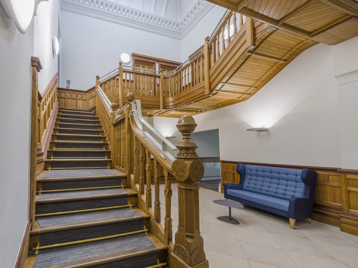 Under the scheme, the 20th-century extension was removed and replaced with an architecturally sympathetic gabled building, which accommodates a new lecture theatre and seminar rooms.
