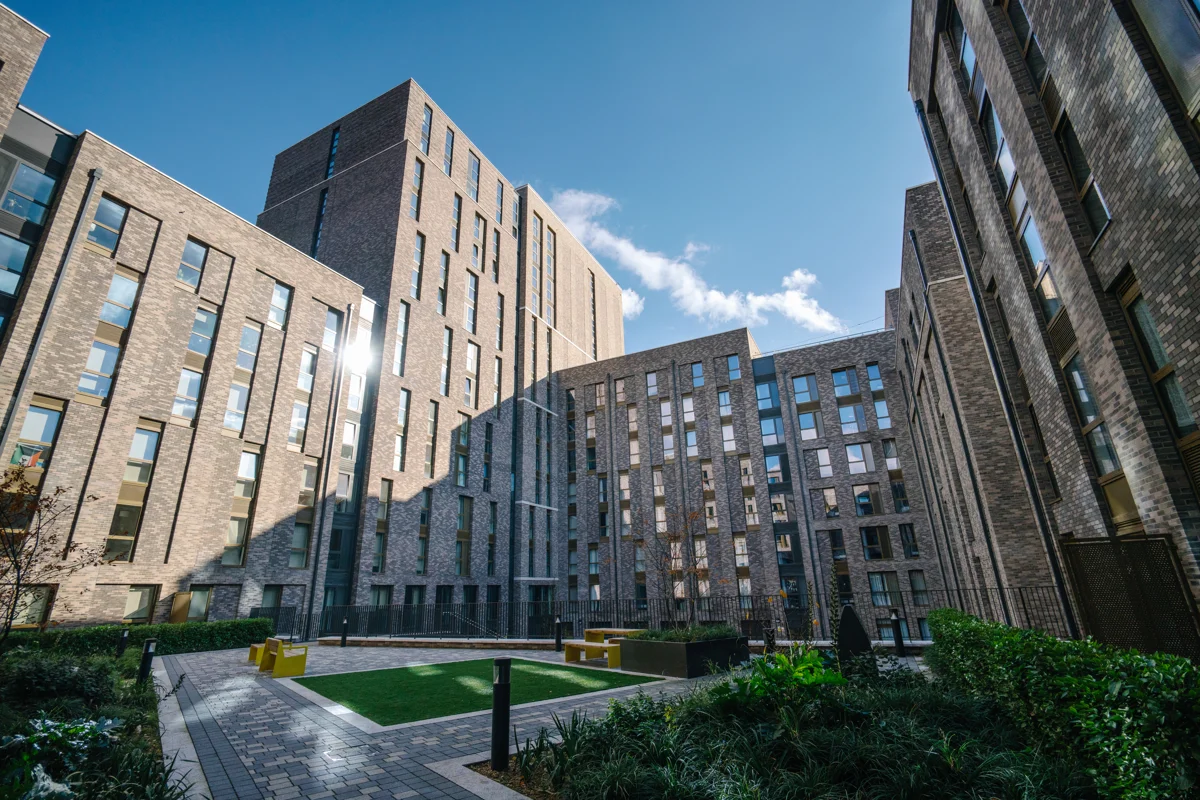 Despite the urban nature of the development, high-quality landscaping, designed by Ares Landscape Architects, is provided within the courtyard alongside a sustainable rain garden.