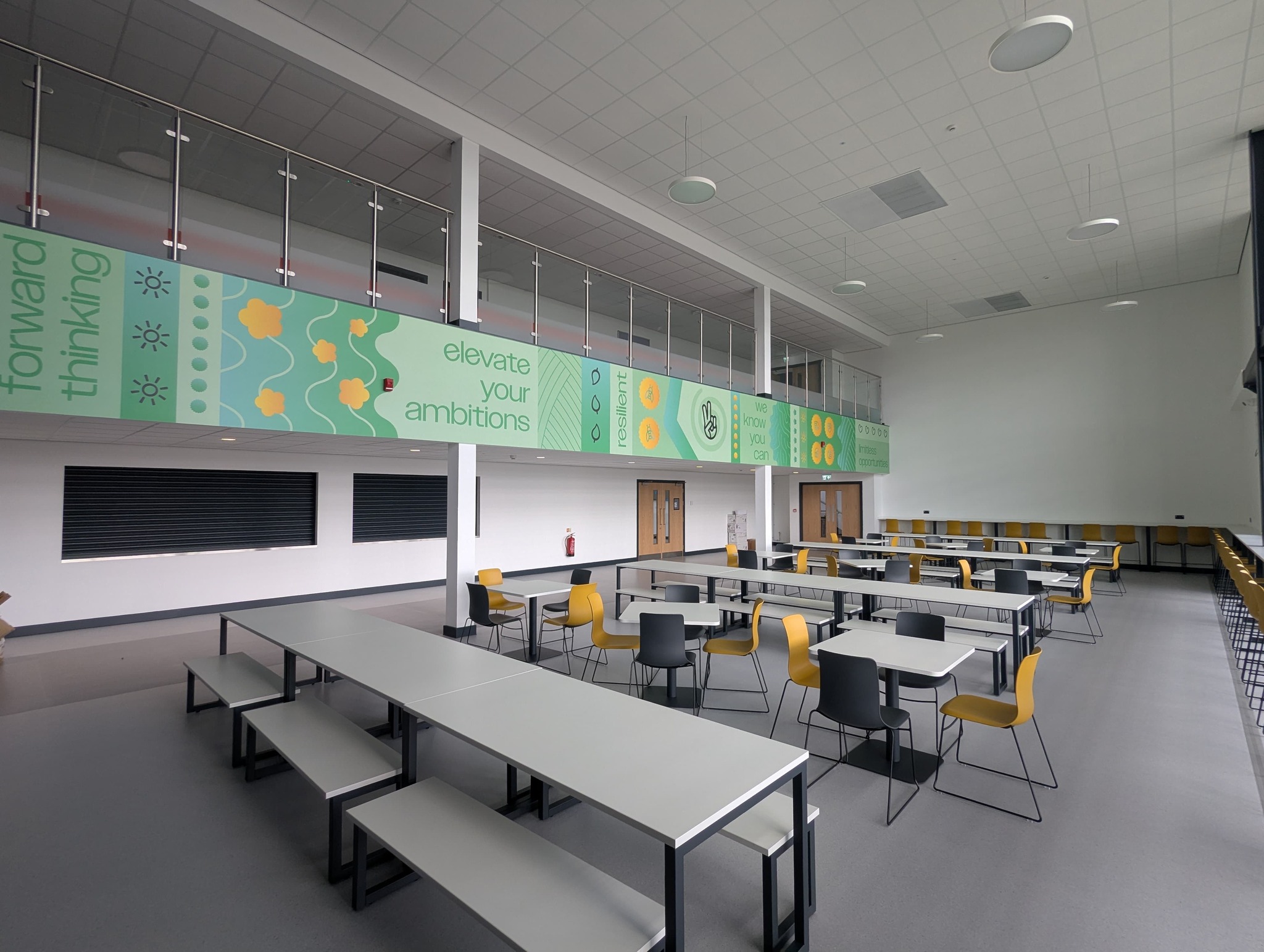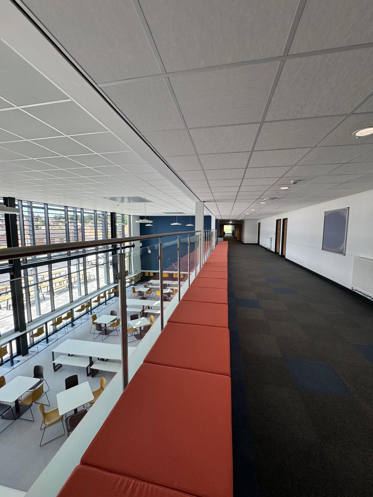 The new two-storey building contains 25 classrooms, 4 laboratory spaces, kitchen, cafe, library, learning zones and ancillary spaces such as toilets, plant and circulation. It will eventually expand to cover 26 different subjects – including A Level, GCSE and vocational courses.