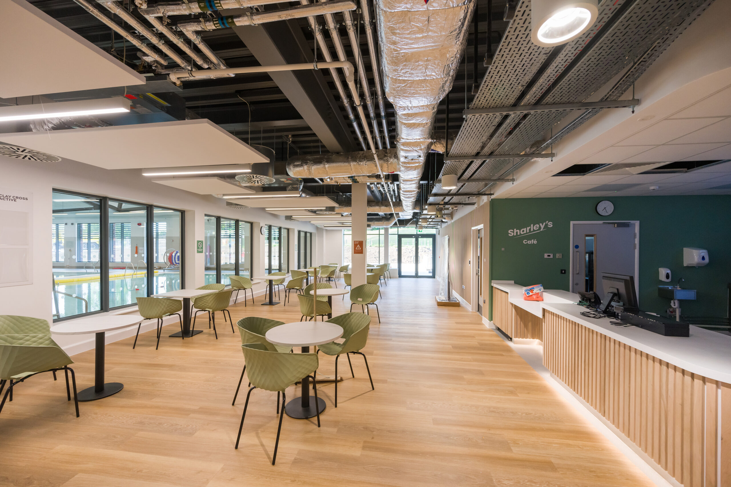 Clay Cross Active replaces the outdated Sharley Park Leisure Centre. Designed by GT3 Architects, the low-carbon facility features sustainable technologies such as solar PV panels and air source heat pumps. Clay Cross Active combines health, fitness and wellbeing facilities with essential community services for the more than 20,000 local residents.